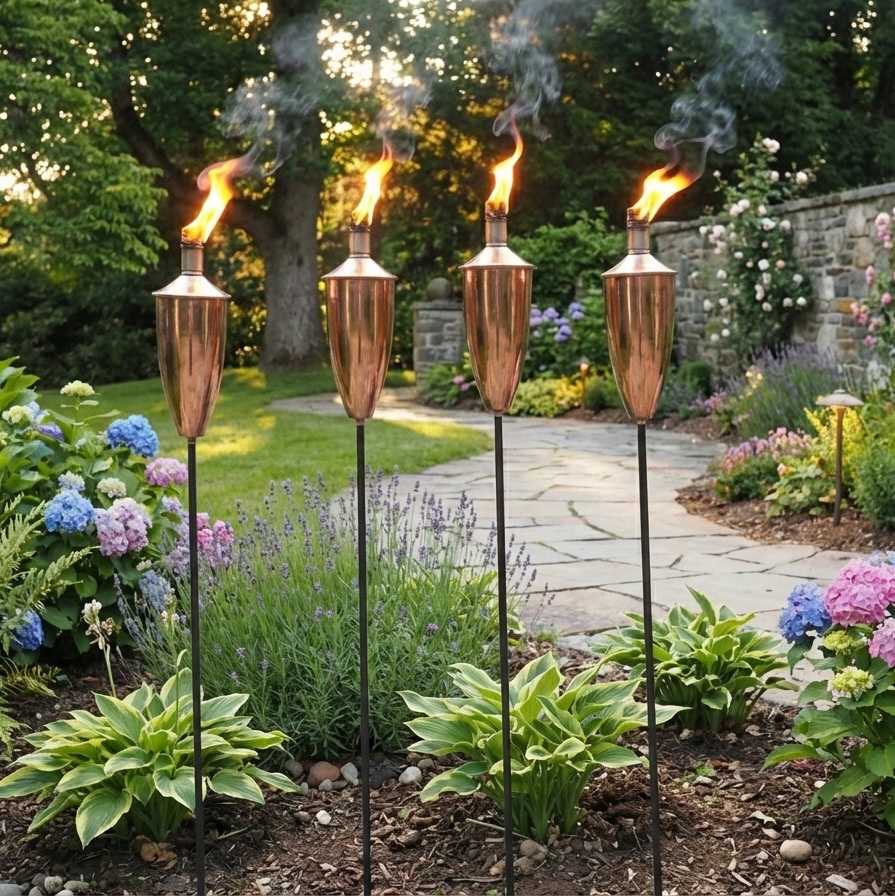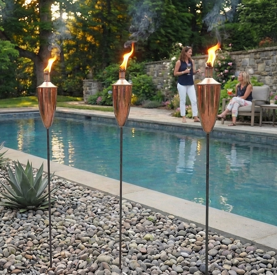Delight your guests with the soothing glow that these copper garden torches will bring to your garden or party. Make stunning wedding features! The oil lamp is made with a beautiful copper effect finish and stainless steel detail to give fantastic presentation and longevity.