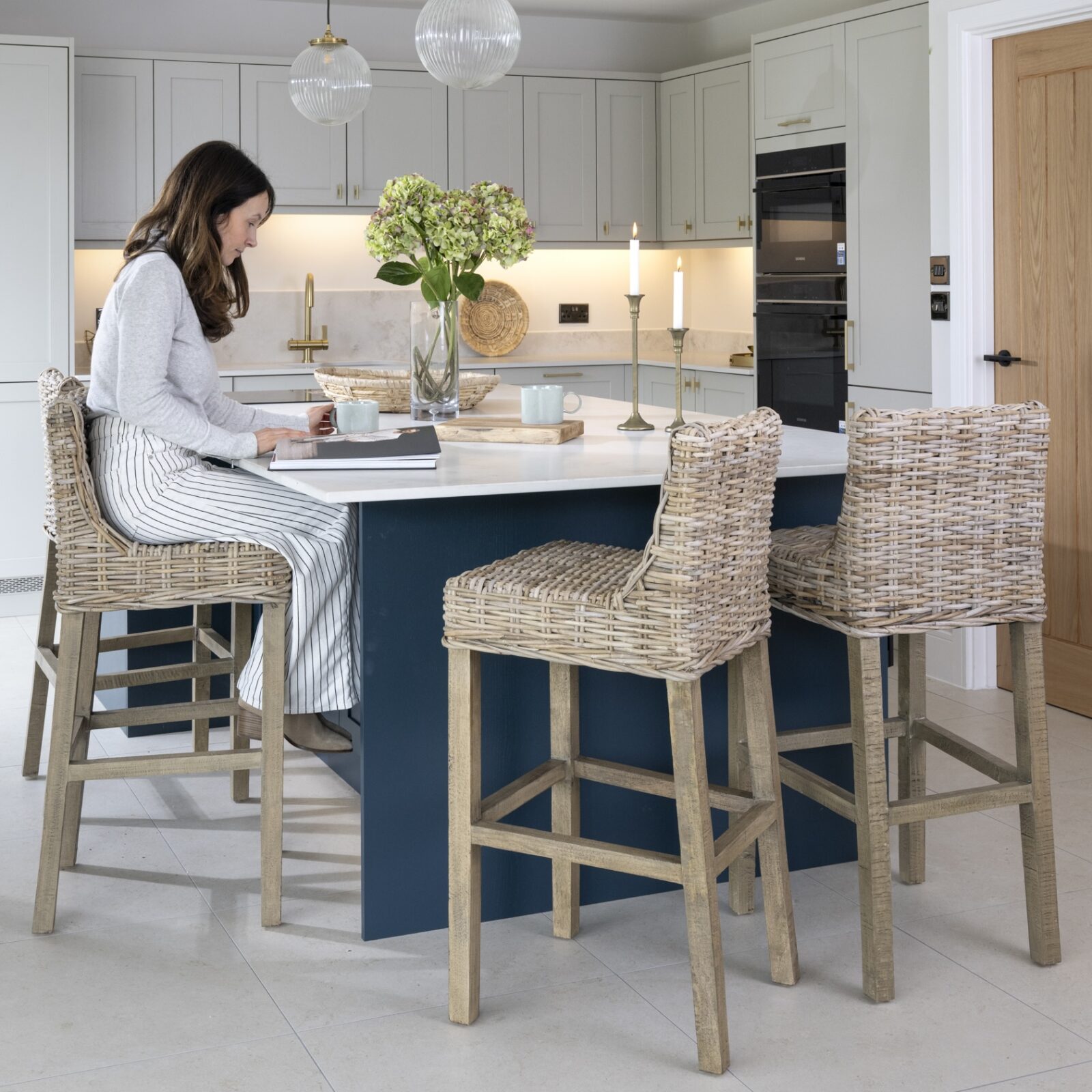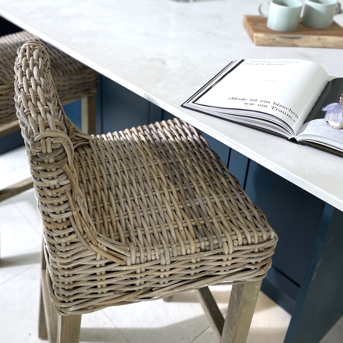 Our beautiful Lyon wicker kitchen stool complements any interior style, from modern to farmhouse and adds a timeless, trendy look to your home. Hand crafted with Kubu (a form of natural Indonesian wicker), the natural earthy tones in the materials in this counter height stool are beautiful and will compliment any décor style. The backrest with the small side support makes this kitchen stool especially comfortable and adds an extra element of character. Simply pull up this wicker counter stool to your kitchen island and enjoy your breakfast in both comfort and style.